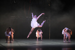 Initialement crée à trois en collaboration avec un duo au cerceau aérien, « L’Aria » a vu le jour principalement à travers l’improvisation. Ce ballet est une création spontanée mise en place en un temps réduit grâce à l’harmonie et l’entente des trois danseuses qui travaillent ensemble régulièrement depuis de nombreuses années. Le processus de création s’est révélé naturel et organique, mêlant au résultat trois gestuelles différentes. Le ballet s’est ensuite enrichie de 6 danseuses, complexifiant ainsi l’occupation de l’espace scénique et renforçant la charge émotionnelle, projetant ainsi « L’Aria » dans une direction différente. Le court ballet en trio de 3’30 s’est vu rallongé en une petite pièce à 9 danseuses d’une durée de 9’. « L’Aria » est complété de deux autres titres du même groupe et du même album, choisis dans le but de conserver le même univers sonore. La création en trio s’est donc renouvelée en se modelant autour de ces 5 nouvelles identités.