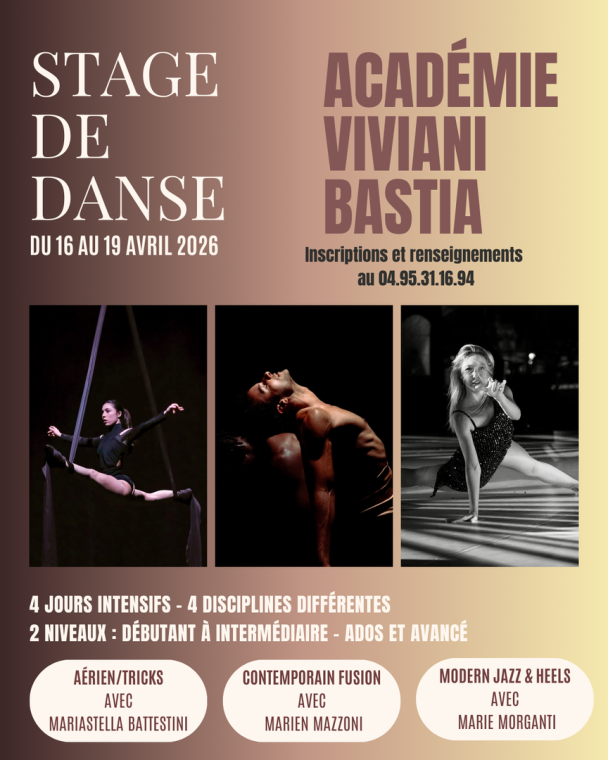 Pour les autres (niveau avancé requis) il est possible de s’inscrire en postant votre chèque au 63 Boulevard Graziani 20200 Bastia (libellé Académie de Danse) Téléphone 04.95.31.16.94